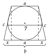 Skorzystaj z tego, że jeśli w czworokąt da się wpisać okrąg, to suma długości jego przeciwległych boków jest równa.