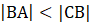 Na rysunku, długość odcinka BA jest mniejsza niż długość odcinka CB, oraz długość odcinka AD jest równa długości odcinka DC. Sprawdź, które zdanie jest prawdziwe.
