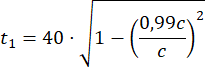 , gdzie t1 oznacza czas, który minął dla obserwatora będącego w ruchu; t0 = czas, który minął dla obserwatora pozostającego w bezruchu, v – prędkość ruchu obserwatora będącego w ruchu względem obserwatora pozostającego w bezruchu, c – stała prędkość światła w próżni, czyli 300 000