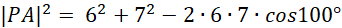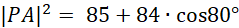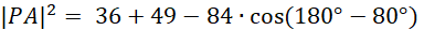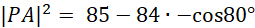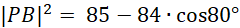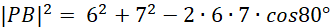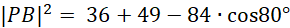 Odczytaj wartość cosinusa kąta 80° z tablicy wartości funkcji trygonometrycznych, podstaw do równania i oblicz.