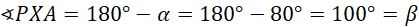 Oblicz miarę kąta PXA, wiedząc, że jest kątem przyległym do kąta CXD i oznacz go jako β.