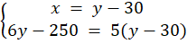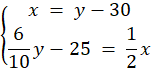 W tym zadaniu musisz wyznaczyć takie liczby x i y, gdzie x jest liczbą o 30 mniejszą od y oraz 60% liczby y jest o 25 większe od 50% liczby x.
