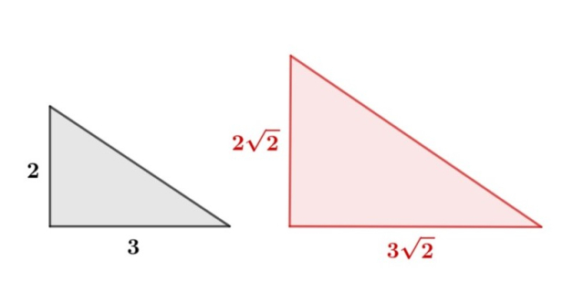 Skonstruuj trójkąt, a następnie trójkąt do niego podobny, którego pole jest dwa razy większe.