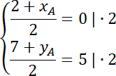 Stwórz układ równań, aby wyznaczyć współrzędne wierzchołka A: