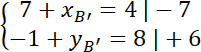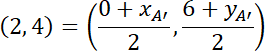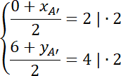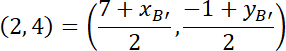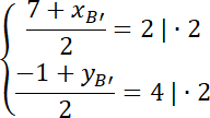 Znasz prostą prostopadłą do osi przechodzącą przez punkty, ponieważ jest to prosta zawierająca odcinek AB. Znajdź miejsca przecięcia prostej i osi oraz wykorzystaj to, że przecięcie jest środkiem odcinka łączącego punkty do siebie symetryczne.