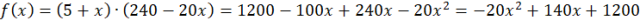 Ustalenie systemu monitoringu w osiedlu domów jednorodzinnych kosztuje 240 zł od każdego abonenta, ale tylko pod warunkiem, że przynajmniej pięciu chętnych podpisze umowę. Za każdym dodatkowym domem dołączonym do sieci koszt instalacji maleje o 20 zł. Jaka liczba domów, w których zakładany będzie monitoring, jest najbardziej opłacalna dla operatora? Jaką najmniejszą opłatę mogą uiścić abonenci przy sytuacji, gdy zysk operatora będzie największy?