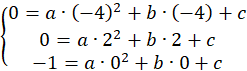 Wiadomo, że miejscami zerowymi funkcji kwadratowej są liczby -4 i 2. Wykres tej funkcji przecina oś y w punkcie o drugiej współrzędnej -1. Twoim zadaniem jest wyznaczenie zbioru wartości tej funkcji.