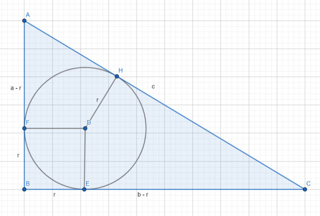 Udowodnij, że w dla każdego trójkąta prostokątnego i okręgu o promieniu r wpisanego w ten trójkąt zachodzi relacja