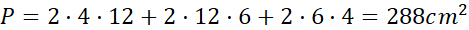 W tym zadaniu musisz obliczyć pole powierzchni całkowitej prostopadłościanu, jeśli pierwsza krawędź ma 4 cm, druga jest trzy razy większa, trzeci – dwa razy mniejsza od drugiej.