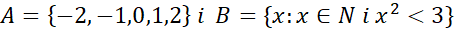 Wypisz wszystkie elementy zbioru B, czyli liczby naturalne, których kwadrat jest liczbą mniejszą od 3. Zauważ, że uzyskany zbiór zawiera się w zbiorze A, ponieważ każdy element zbioru B jest także w zbiorze A.