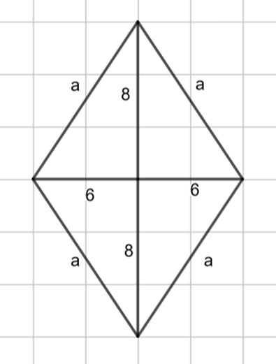 Zauważ, że połowy przekątnych rombu wraz z jego bokiem tworzą trójkąty prostokątne. Skorzystaj z twierdzenia Pitagorasa i oblicz długość jego boku, a następnie obwód.