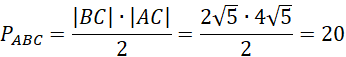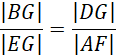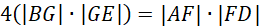Wykonaj rysunek pomocniczy. Wyznacz zależność boku |BG| od |AF|. Następnie wyznacz zależność boku |BG| od |EG|. Wyznacz długość |BG| i następnie |EG|. Skorzystaj z twierdzenia Pitagorasa i wyznacz długość |BE|. Następnie wyznacz długość |AF|. Z twierdzenia Pitagorasa wyznacz długość |AD|. Na koniec wyznacz długość przyprostokątnych w trójkącie ABC i pole tego trójkąta.