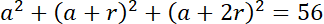 Podaj trzy liczby, których suma kwadratów jest równa 56. Dodatkowo wiadomo, że tworzą ciąg arytmetyczny o sumie 12.