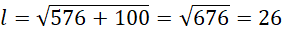 Dany jest pewien stożek. Wiadomo o nim, że jego wysokość wynosi 24, a jego objętość to 800π. Wskaż długość tworzącej tego stożka: