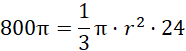 Podstaw wartości pod wzór na objętość stożka, by obliczyć długość promienia podstawy: