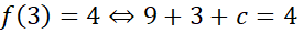 Z warunku f(3) = 4 wyznaczamy współczynnik c we wzorze funkcji, a następnie badamy wartość funkcji w 1.