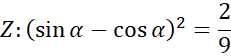 Rozpiszmy kwadrat różnicy sinusa i cosinusa z zadania. Dostajemy w ten sposób zależność: