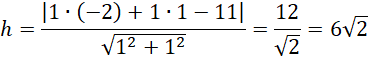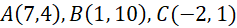 Zapisz równanie prostej AB. Oblicz odległość punktu C od prostej AB ze wzoru (znajdziesz go w tablicach matematycznych). Ten odcinek jest wysokością z punktu C na bok AB. Oblicz długość odcinka AB i pole trójkąta.