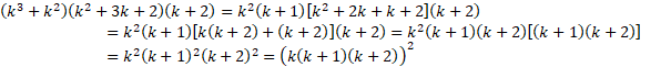 Kwadrat iloczynu trzech kolejnych liczb naturalnych jest podzielny przez 36, ponieważ: przynajmniej jedna z tych liczb jest podzielna przez 2, przynajmniej jedna z tych liczb jest podzielna przez 3, co dowodzi, że ten iloczyn jest podzielny przez 6, a co za tym idzie – kwadrat całego wyrażenia jest podzielny przez 36.