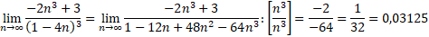 Rozwiń mianownik ułamka ze wzoru skróconego mnożenia. Podziel każdy wyraz w liczniku i w mianowniku przez n z najwyższą potęgą. Wyrazy postaci