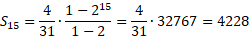 Wyznacz iloraz ciągu q, a następnie pierwszy wyraz . Na koniec oblicz sumę piętnastu początkowych wyrazów.