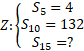 W tym zadaniu należy wyznaczyć sumę piętnastu początkowych wyrazów ciągu geometrycznego, jeżeli suma pięciu początkowych wyrazów jest równa 4, a suma dziesięciu początkowych wyrazów wynosi 132.