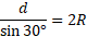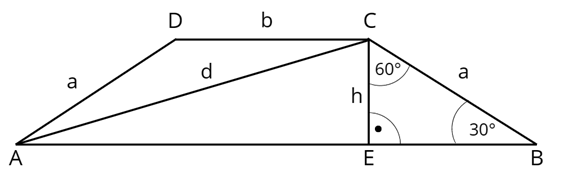 . Oblicz boki CE, EB, AE. Wyznacz długość odcinka d. Zauważ, że promień okręgu opisanego na trójkącie ABC jest równy promieniowi okręgu opisanego na trapezie.