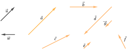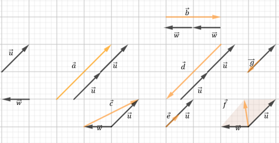 W tym zadaniu należy wskazać na rysunku wektory równe wektorom zapisanym za pomocą