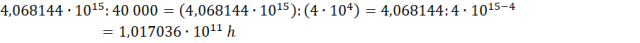 Oblicz, ile czasu zajęłoby pokonanie z tą prędkością odległości dzielącej nas od Gwiazdy Polarnej, jeśli największą prędkość z jaką kiedykolwiek podróżował człowiek, osiągnęła załoga misji Apollo 10 – wynosiła ona niemal 40 000 km/h. Odpowiedź podaj, stosując zapis dziesiętny i notację wykładniczą.