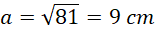 Wyznacz długość boku działki na planie korzystając z tego, że jest ona kwadratem o podanym polu.