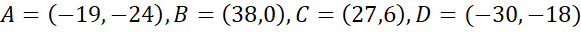 Narysuj czworokąt ABCD w układzie współrzędnych i skorzystaj z tego, że figura środkowosymetryczna ma środek symetrii, czyli po obróceniu jej o
