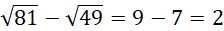 Oblicz wartości każdego z pierwiastków podanych w treści zadania oraz powstałych wyrażeń. Zastanów się jaka liczba podniesiona do kwadratu da wartość znajdującą się pod pierwiastkiem.