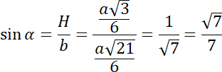 Zauważ, że wysokość ostrosłupa, wysokość ściany bocznej i połowa krawędzi podstawy tworzą trójkąt prostokątny – skorzystaj z funkcji tangens, aby obliczyć długość wysokości ostrosłupa. Następnie zauważ, że wysokość ostrosłupa, połowa przekątnej podstawy i krawędź boczna również tworzą trójkąt prostokątny. Skorzystaj z twierdzenia Pitagorasa, aby obliczyć długość krawędzi bocznej, a następnie sinus podanego kąta.
