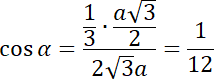 wysokości podstawy, wysokość ostrosłupa i wysokość ściany bocznej tworzą trójkąt prostokątny i na tej podstawie wyznacz cosinus podanego kąta.