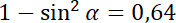 Skorzystaj z jedynki trygonometrycznej i wyznacz z niej wartość sinusa. Następnie z funkcji sinus wyznacz długość szukanego boku powstałego przekroju i jego pole.