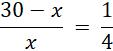 4(30 − x) = x