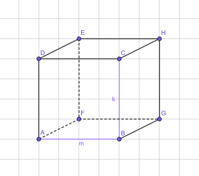Na początku narysuj sześcian z zaznaczonymi krawędziami k oraz m: