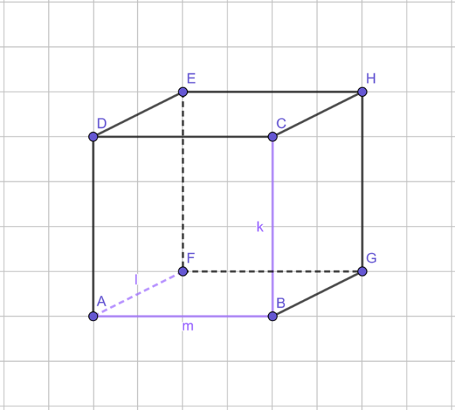 Na początku narysuj sześcian z zaznaczonymi krawędziami k oraz m: