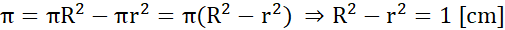 Należy obliczyć pole kwadratu, wiedząc, że pierścień utworzony z okręgu opisanego i wpisanego w ten kwadrat ma pole równe