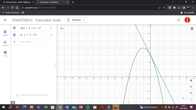 Podano funkcje y = f(x) i y = g(x). Musisz sporządzić wykresy obu funkcji w jednym układzie współrzędnych i odczytać rozwiązania nierówności lub równania: