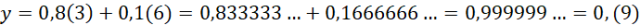 Dodaj ze sobą ułamki okresowe, aby dostać y. Pamiętaj, aby dodawać do siebie cyfry na odpowiadających sobie miejscach po przecinku. Porównaj ze sobą liczby x i y.