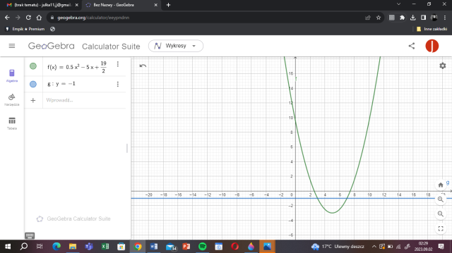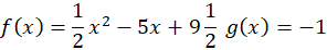 Podano funkcje y = f(x) i y = g(x). Musisz sporządzić wykresy obu funkcji w jednym układzie współrzędnych i odczytać rozwiązania nierówności lub równania: