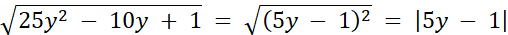 Zapisano podane wyrażenia bez użycia symbolu pierwiastka. Zwróć uwagę na to, że wyrażenie podniesione do kwadratu i spierwiastkowane, równe jest swojej wartości bezwzględnej.