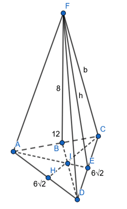 Skorzystaj z twierdzenia Pitagorasa w trójkącie ECF i wyznacz długość wysokości ściany bocznej ostrosłupa, a następnie jego pole boczne.