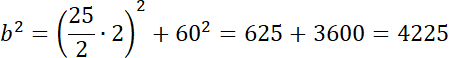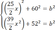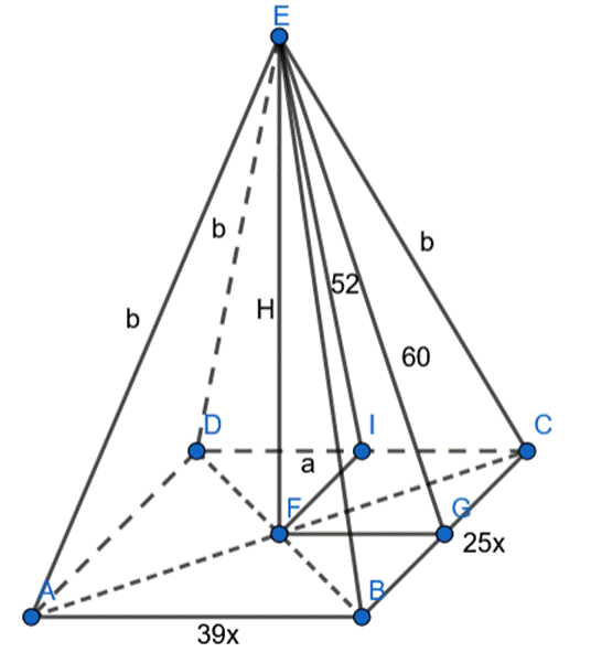 Wyznacz krawędzi bocznej ostrosłupa prostego, którego podstawą jest prostokąt, którego boki pozostają w stosunku 39 : 25, a wysokości różnych ścian bocznych poprowadzone na krawędzie podstawy ostrosłupa są równe: 60 cm i 52 cm.