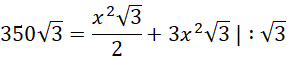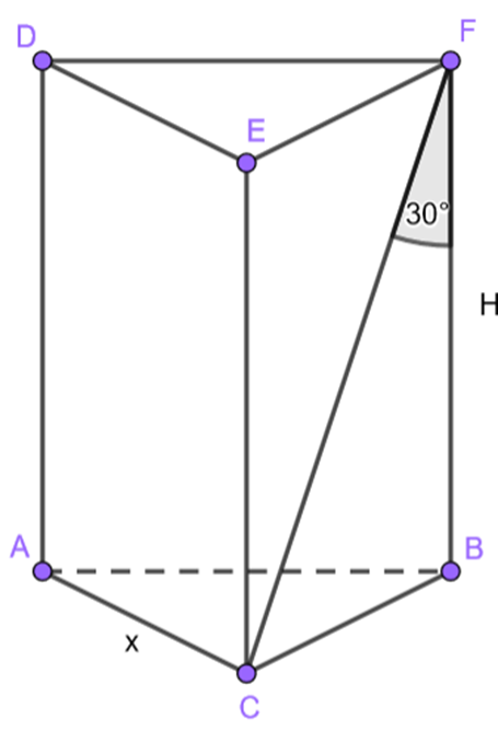 Na początku zauważ, że trójkąt prostokątny BCF jest specjalnym trójkątem prostokątnym 30°, 60°, 90°. Dzięki tej informacji jesteś w stanie uzależnić wysokość H od długości krawędzi podstawy x. Następnie oblicz pole powierzchni całkowitej używając tylko niewiadomych z x. Pole podstawy obliczysz ze wzoru