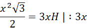 Stwórz rysunek pomocniczy, gdzie x to długość krawędzi podstawy, H to wysokość, a α to poszukiwany kąt: