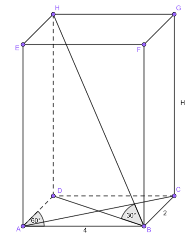 Zauważ, że trójkąt BDH jest specjalnym trójkątem prostokątnym 30°, 60°, 90°, a więc wysokość H dasz radę obliczyć, jak będzie znana długość przekątnej BD. Wykorzystaj twierdzenie cosinusów