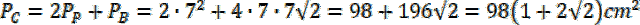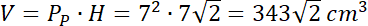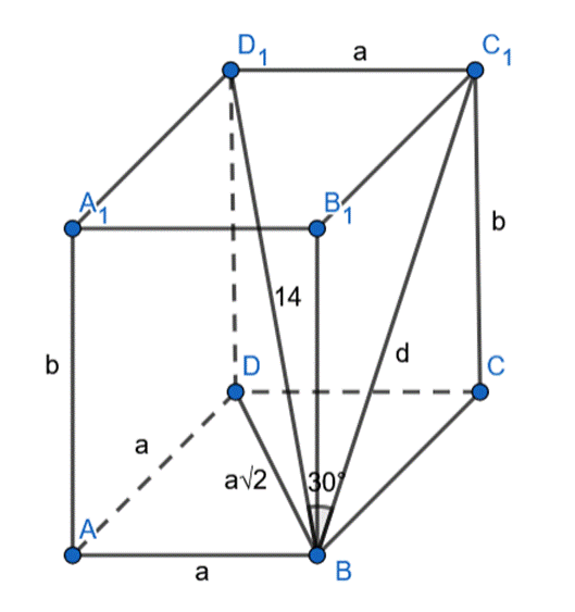 Wyznacz pole powierzchni całkowitej i objętość graniastosłupa prawidłowego czworokątnego, którego przekątna ma długość 14 cm, jeśli kąt nachylenia tej przekątnej do płaszczyzny podstawy jest równy 60°.