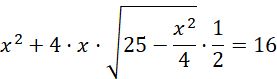 Zauważ, że jesteś w stanie uzależnić długość wysokości ściany bocznej od długości podstawy. Wykorzystaj twierdzenie Pitagorasa, aby to zrobić. Następnie wykorzystaj podane pole powierzchni całkowitej i podstaw obliczone wartości. Przekształcaj równanie, aż otrzymasz wielomian czwartego stopnia. Zamiast x2 podstaw zmienna t, a następnie rozwiąż równanie kwadratowe. Zauważ, ze jedna odpowiedź jest błędna, ponieważ pole podstawy byłoby większe od pola powierzchni całkowitej.